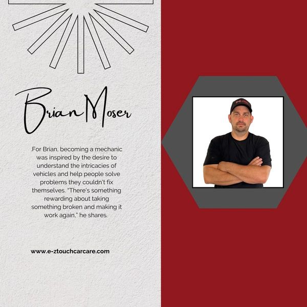 At E-Z Touch Car Care, we take pride in the team of skilled mechanics who work tirelessly to keep your vehicles running smoothly. One of those dedicated individuals is Brian Moser, whose passion for cars and commitment to customer service make him a key member of our crew. Here’s a look at Brian’s journey and his expertise in the automotive world.